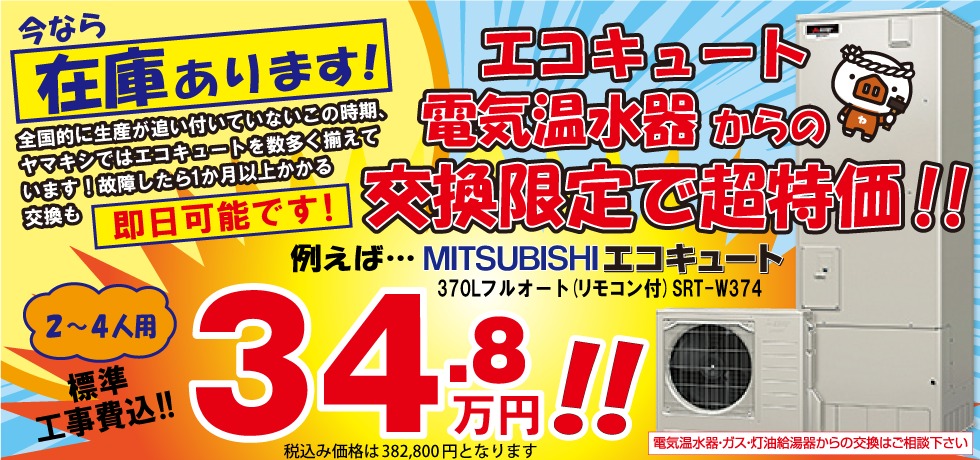 エコキュート交換工事キャンペーン 石油給湯器 ガス給湯器 交換専門店 茨城県つくば市のほまれ
